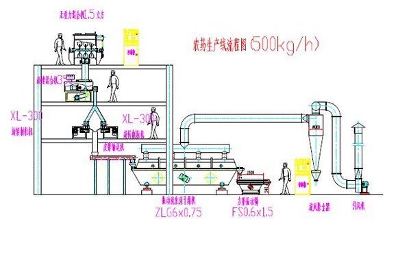 WDG水分散粒劑農藥工藝與設備流程:原料-----混合(干物料)---氣流粉碎機---捏合(濕物料)...